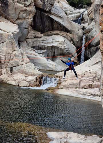 Un percorso breve ma spettacolare, dove l'acqua ha modellato piscine naturali, toboga e meravigliose cascate. Con una guida esperta al tuo fianco, ti lancerai in tuffi emozionanti, scivolerai sulle rocce levigate e affronterai piccole calate con la corda.