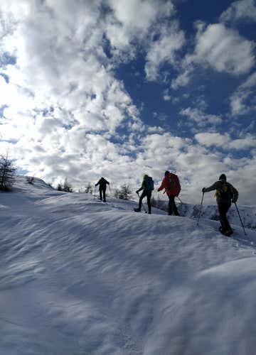 Una volta pronti, partiremo per l'escursione verso le ore 10.30. Il percorso, semplice e adatto a tutti, si snoda tra i suggestivi pendii innevati dell'alta Val Camonica per un totale di circa 9,5 km. Il dislivello di 400 metri rende il tragitto accessibile anche a chi non ha mai indossato le ciaspole, permettendoci di goderci il cammino senza preoccupazioni. Immersi in un panorama fiabesco, attraverseremo boschi silenziosi e ampi spazi aperti, respirando l’aria fresca e pura della montagna invernale.