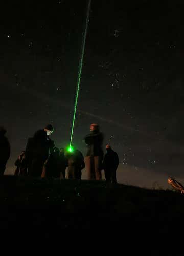 Il bello della nostra ciaspolata sta arrivando perché il sole comincia a calare sempre più e il bianco della neve lascia spazio al buio del cielo che si riempie di stelle. Muniti delle nostre torce, continuiamo la camminata alzando di tanto in tanto gli occhi per riconoscere le costellazioni e ascoltare le storie del sistema solare.