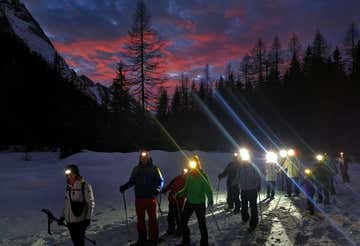 In compagnia di una Guida Alpina ti avventurerai tra boschi e pendii innevati fino a raggiungere un accogliente rifugio. Qui ti aspetta una cena tipica trentina, prima di rientrare a valle a bordo di una motoslitta o di un gatto delle nevi.