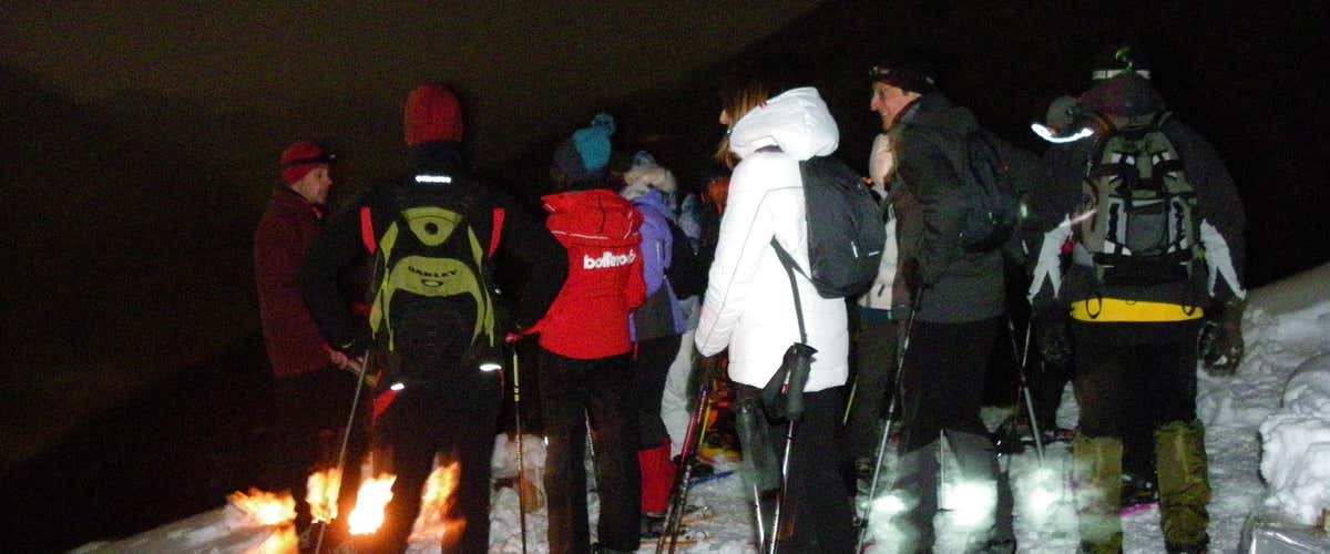 Durante il percorso tra boschi e pascoli imbiancati, la guida ti racconterà storie e leggende su questo territorio poco conosciuto. Accendi la torcia, si parte!
