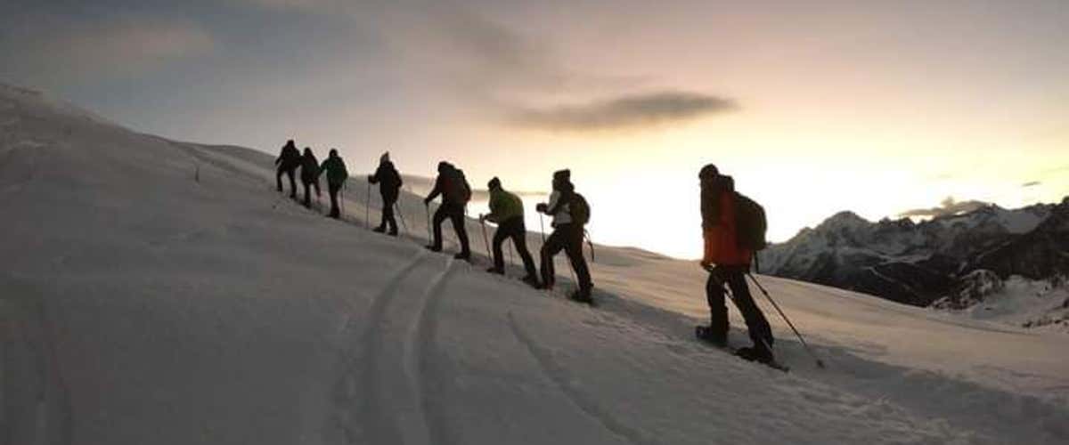Ciaspolata al tramonto sotto il Pizzo Scalino