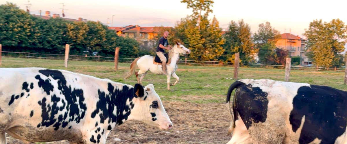 E invece è proprio così: partecipando alla nostra transumanza a cavallo a Zanica! Indosserai i panni di un cowboy e, in sella al tuo destriero, sposterai e condurrai una mandria di mucche nel recinto. Il tutto in compagnia di un'esperta guida equestre, pronta a fornire indicazioni e supporto.