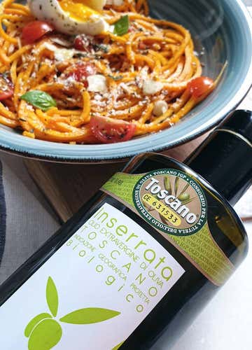L'olio extravergine d'oliva Inserrata è un prodotto di categoria superiore 100% Toscano, ottenuto dalla frangitura a freddo senza filtraggio effettuata il giorno stesso della raccolta, per preservare le caratteristiche organolettiche del prodotto. Assaggeremo dunque 2 tipologie di olio EVO: