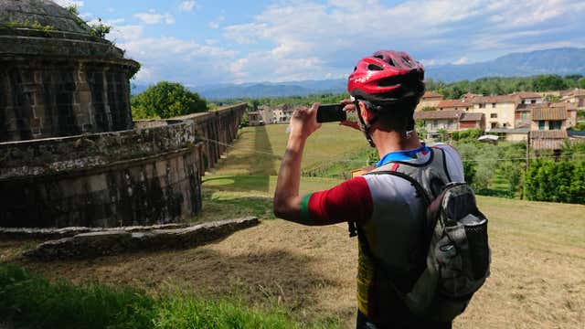 Ma il bello deve ancora venire: il tour continua verso le colline delle ville lucchesi, tra vigneti, uliveti e panorami da cartolina. Qui, tra una salita e l’altra, troverai la tua ricompensa: una sosta alla Cantina Gattaiola, dove ti attende una degustazione di vini locali accompagnata da un tagliere con specialità toscane.
