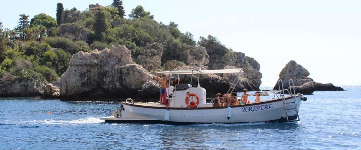 Durante la navigazione, potremo ammirare la Baia di Naxos, la Grotta dell'amore, Capo Taormina e la Grotta delle Sirene, accompagnati dalle storie e dai racconti dello skipper. Faremo poi una sosta per il bagno nei pressi dell'Isola Bella, durante la quale potremo fare snorkeling o goderci una nuotata tra le acque cristalline della baia.
