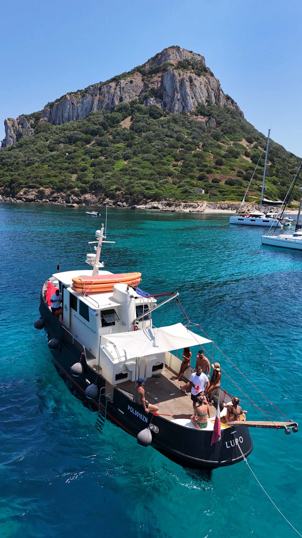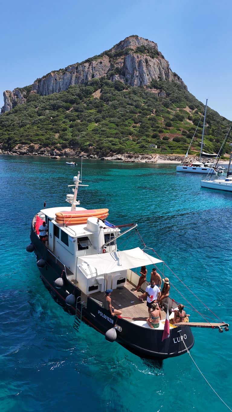 A bordo di Lupo ti aspetta una divertente giornata di navigazione tra le Piscine Naturali di Molara e l'Area Marina Protetta di Tavolara.