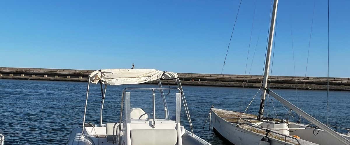 L'imbarcazione utilizzata è un gommone Sacs Madras 750 di 7,50 metri, con motore da 250 CV, tendalino, doccetta, scaletta di risalita e prendisole. A bordo si sta scalzi.