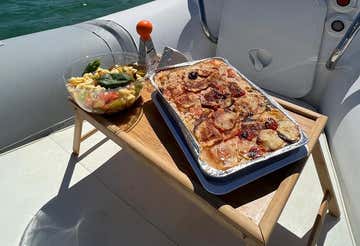 Vivi tutto questo durante un'escursione in gommone al tramonto da Bari: 2 ore di relax con navigazione lungo la costa, sosta per il bagno e un ricco aperitivo a bordo.
