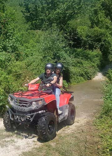 Approfittando della versatilità del mezzo, proveremo diversi tipi di terreno: dall'asfalto allo sterrato, dalle pietre alla ghiaia. Con le giuste condizioni atmosferiche, potremo anche guadare dei piccoli ruscelli e avventurarci in pozze di fango e montagnette di terra... perché nessun tour in quad degno di questo nome si conclude con i vestiti puliti!