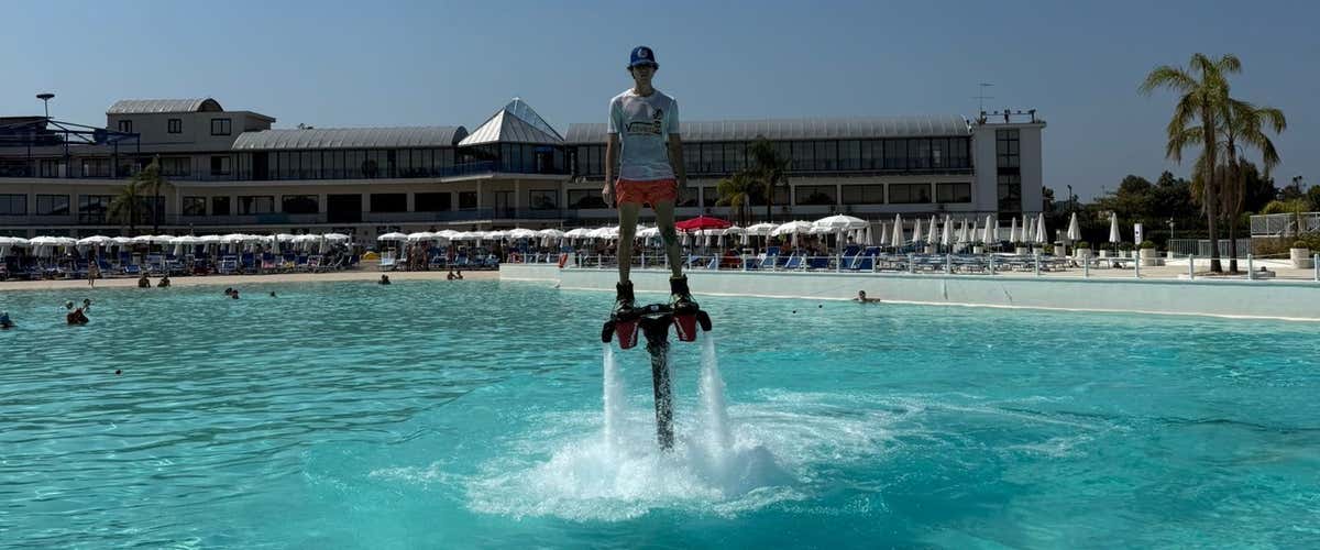 15 minuti di pura adrenalina in cui i solleverai dalla piscina, fluttuerai a mezz’aria e magari riuscirai anche a fare qualche elettrizzante manovra! Il tutto in totale sicurezza, con istruttori esperti al tuo fianco e un contesto perfetto per provare qualcosa di nuovo, fuori dagli schemi… e super divertente.