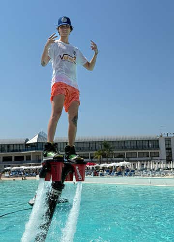 Prima di entrare in acqua, gli istruttori ci spiegheranno come funziona il flyboard, come si indossa correttamente e quali movimenti aiutano a mantenere l’equilibrio. Non serviranno forza o abilità da professionisti: solo un po’ di voglia di mettersi in gioco.