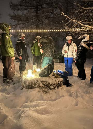 - Sorseggia un calice sotto le stelle, tra fiaccole e piccole luci che scaldano il bosco innevato
