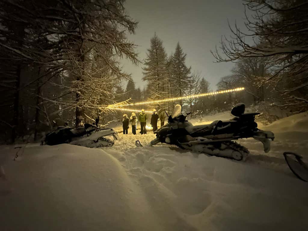Dopo la sosta ripartiamo in motoslitta per l’ultimo tratto fino al punto di partenza, con la luna che illumina la strada. Tra briefing, giro in motoslitta e aperitivo, l’esperienza dura circa 1 ora e mezza in totale.