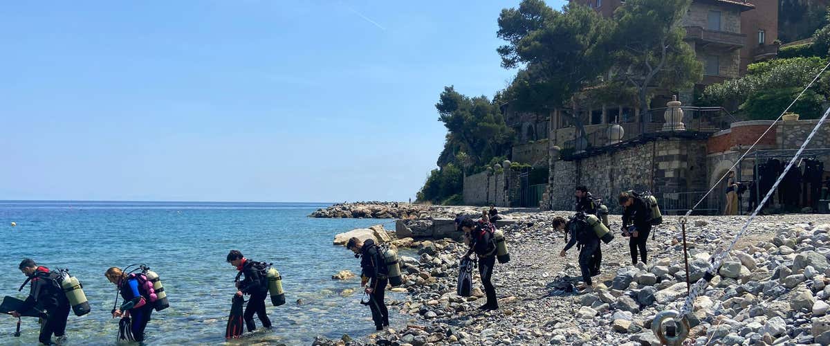 Equipaggiati a dovere, faremo dunque il nostro ingresso in acqua da riva. Durante il battesimo del mare saremo seguiti da un istruttore subacqueo (ogni 2 persone) che ci guiderà nella nostra prima immersione fino a massimo 6 metri di profondità. Quaggiù sarà possibile avvistare castagnole, saraghi, spugne e altre specie caratteristiche della fauna del mar Ligure, uno dei meglio conservati d'Italia!
