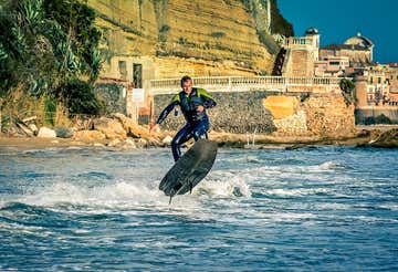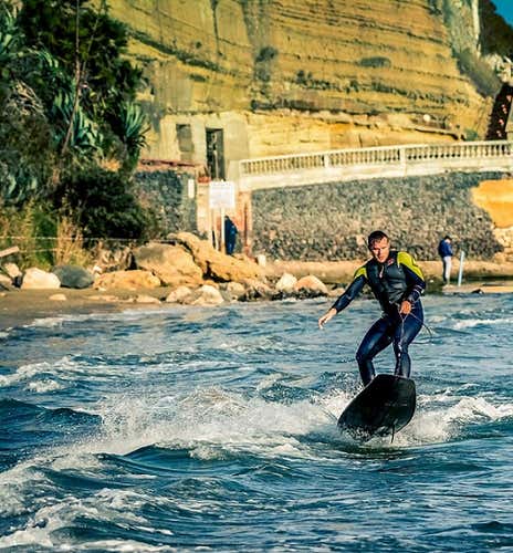 Con la guida di istruttori esperti vivrai un'esperienza unica a pelo d'acqua. Grazie alla tavola con motore integrato a idrogetto, potrai raggiungere fino ai 55 km/h di velocità, ti sembrerà davvero di surfare nell'Oceano in piena libertà, eppure non sarai così lontano da casa!
