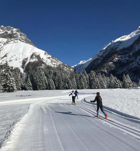 Dopodiché, inizieremo la lezione nella piana del Gaver, luogo dove il fondovalle, di 1500 metri sopra il livello del mare, è incorniciato da montagne che superano i 2500 metri di quota. Proveremo piste con una lunghezza che varia da 1 km a 7,5 km, in base all'anello e alla difficoltà scelti dalla guida.