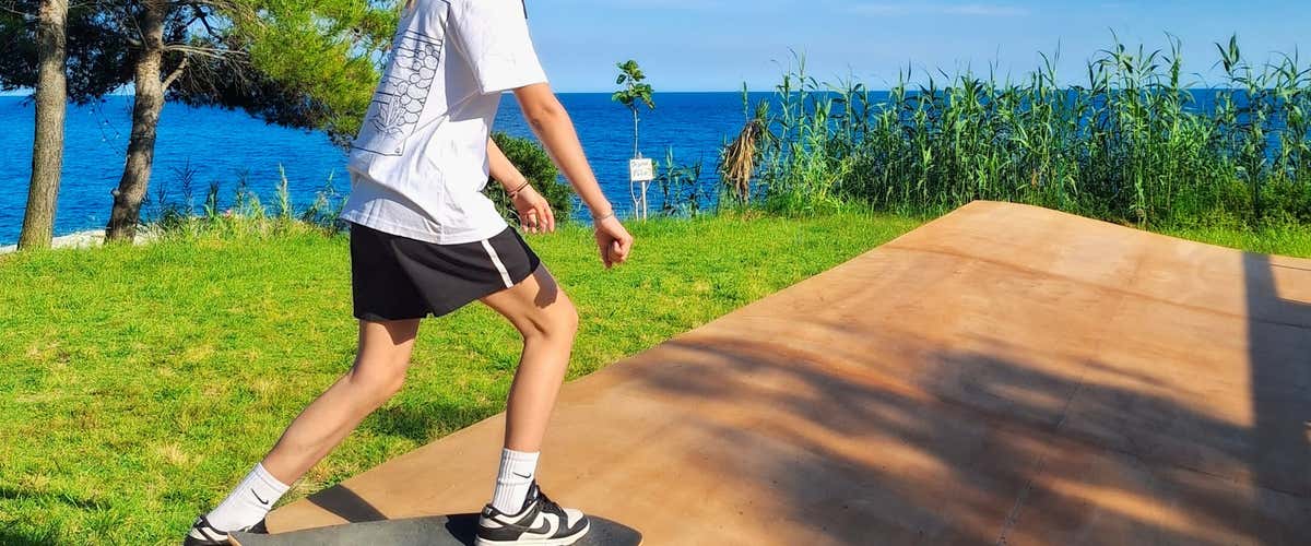 Ad Arenzano, in provincia di Genova, ti aspetta una lezione combo divertente e super efficace: si comincia con lo skate, per poi tuffarsi tra le onde!