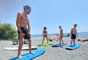 Dopo circa un'ora di esercitazione, ci sposteremo in spiaggia. Ci cambieremo, faremo un breve briefing tecnico e affronteremo una sessione teorica sulle basi del surf: remata, posizione sulla tavola, rotazione e tecniche di take off. Una volta pronti, entreremo in mare per la parte più emozionante: proveremo a metterci in piedi sulla tavola, aiutati dall'istruttore, e ad affrontare le prime onde.
