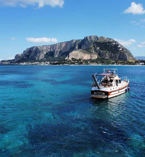 Lasciato il porto procederemo con una navigazione lenta, seguendo il perimetro della costa per circa un'ora. Potremo ammirare il Monte Pellegrino, il principale rilievo montuoso della città che cade a picco sul mare. Le acque che attraverseremo saranno tranquille e ci permetteranno di rilassarci e goderci la vista in completa serenità.