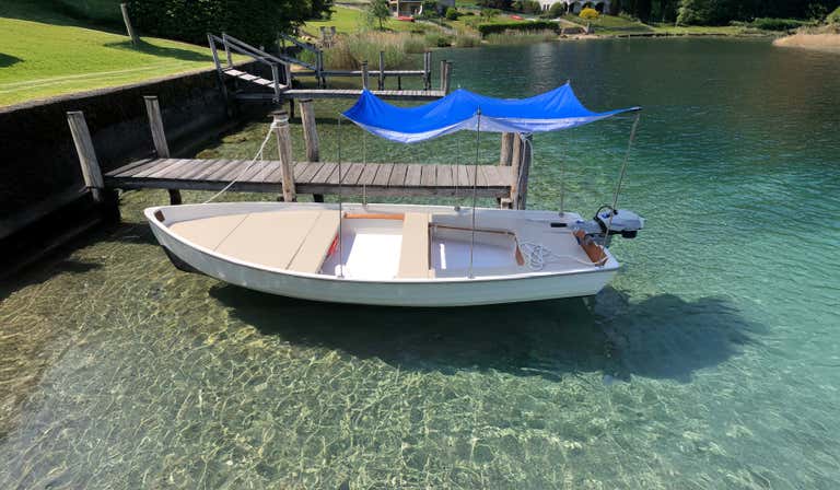 La barca è lunga 4,85 metri, dotata di un motore elettrico da 3 CV: perfetta per una navigazione fluida e silenziosa. Non serve patente nautica. Può ospitare fino a 4 persone ed è equipaggiata con capottina parasole e cuscineria per il massimo comfort.