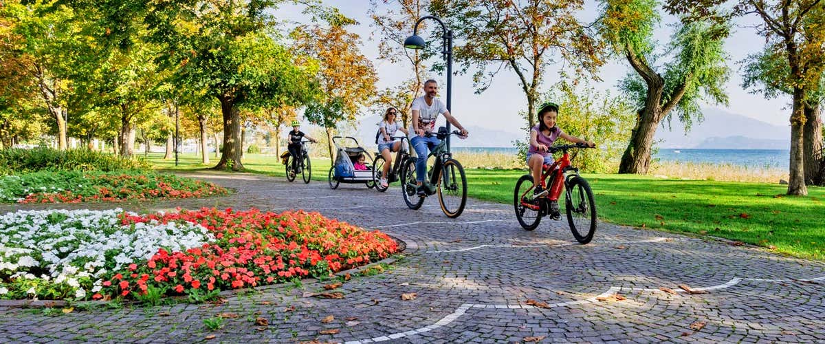 Una volta partiti, potremo percorrere la pista ciclabile che si snoda lungo la riva del lago di Garda fino a raggiungere l'omonima cittadina, che regala scenari magnifici. Oppure potremo intrattenerci nel comune di Bardolino, che offre paesaggi collinari costellati da vigneti e frutteti.