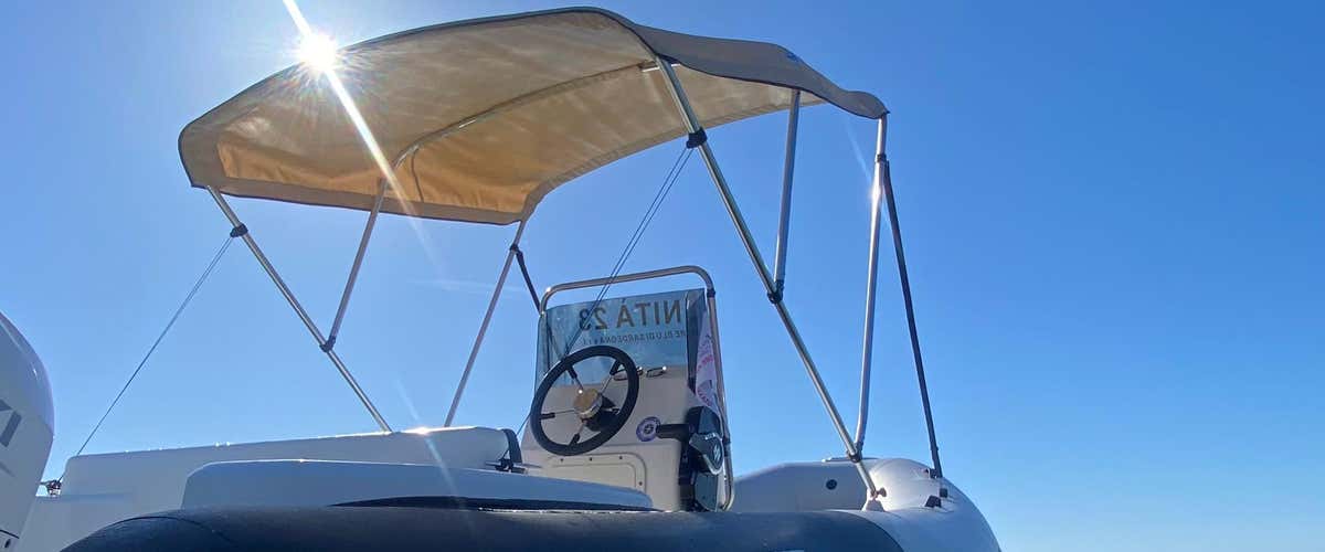 Il gommone, comodo e intuitivo da condurre, è disponibile per la mezza giornata (4 ore) o la giornata intera (9 ore).