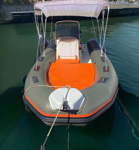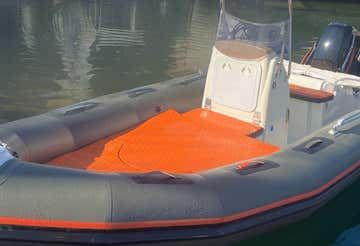 Lo Zodiac Bombard Jupiter 550 è un gommone lungo 5,50 metri e con motore 40 CV, guidabile senza patente nautica. Ideale per gruppi fino a 5 persone, dispone di tendalino, cuscineria, GPS, scaletta per risalire dopo i tuffi e doccetta per sciacquarti dal sale.