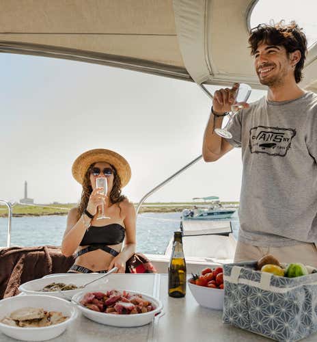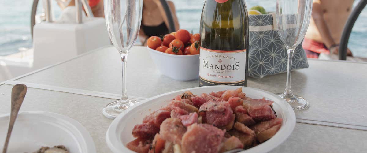 Potrai organizzare la tua serata come preferisci: rilassarti sul ponte godendoti il tramonto, preparare una cena in autonomia nella cucina di bordo oppure lasciarti coccolare da un aperitivo (su richiesta) preparato apposta per te e il tuo partner o gruppo.