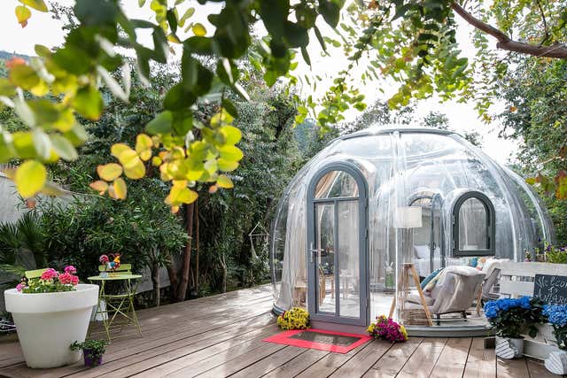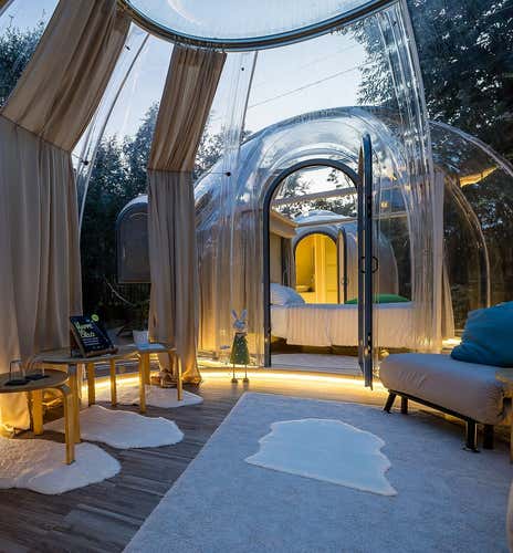 - Rilassati nella tua bolla trasparente, in giardino e nella piscina comune