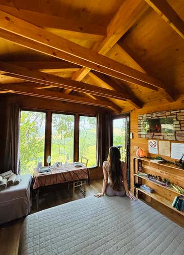La casa sull'albero è ideale per una coppia, ma può accogliere fino a 3 persone.