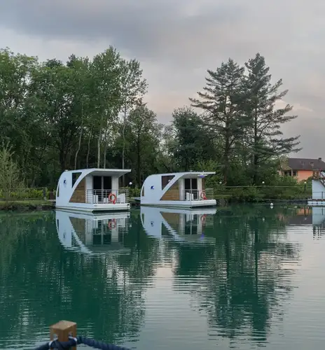 In provincia di Torino, su un tranquillo laghetto immerso nel verde, ti aspetta un soggiorno fuori dal comune: una notte su una vera houseboat, dove il relax incontra il design e l'atmosfera è perfetta per staccare la spina.
