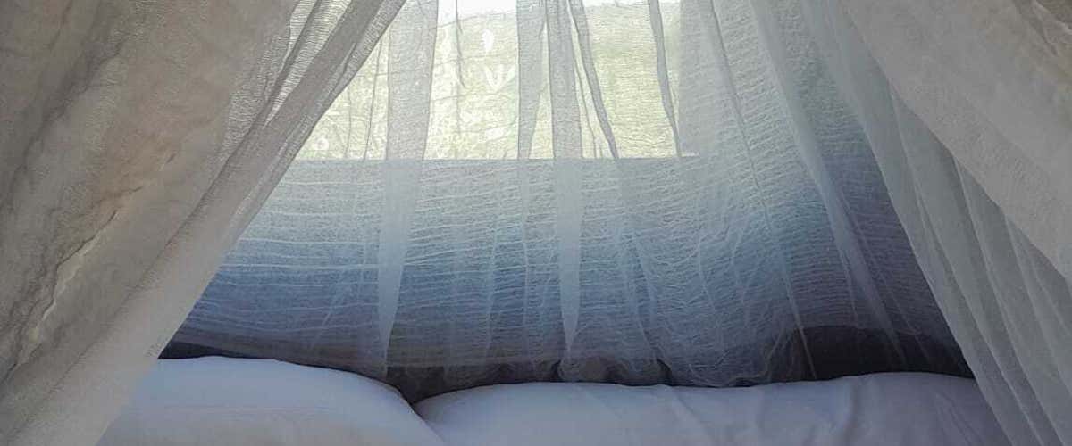 All'interno troverete un letto matrimoniale con lenzuola e asciugamani inclusi, specchio, appendiabiti e una zanzariera da letto, mentre il bagno privato e la doccia solare si troveranno in una struttura adiacente a meno di 5 metri.
