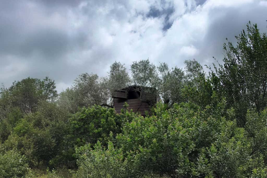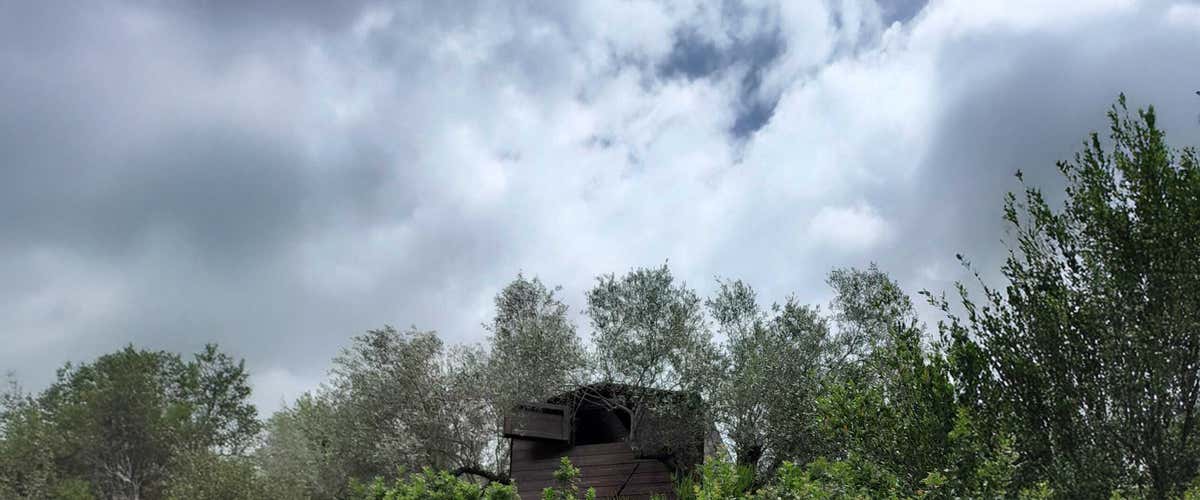 Verrete poi accompagnati alla vostra casetta sugli alberi, una struttura robusta e ben isolata di 2,50 x 2,50 metri, sospesa tra gli ulivi e con una bella vista sulla campagna circostante, con una scaletta di circa 1 metro per salire.
