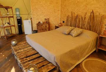 La cupola, realizzata con materiali ecosostenibili e forme geometriche armoniose, offre un ambiente accogliente tutto l'anno, grazie al climatizzatore caldo/freddo. Al suo interno troverete un letto matrimoniale (con possibilità di aggiungere un terzo letto singolo) e un bagno privato completo di doccia, wc, lavandino, bidet, prodotti da bagno biologici e asciugacapelli.