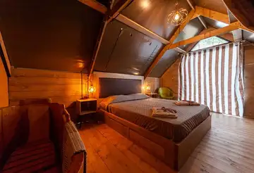 Qui potrai vivere un'esperienza di glamping autentica, dormendo in una Glam Tent realizzata con tavole di legno massello e dotata di ogni comfort. Da questa posizione privilegiata, a poca distanza dal Lago di Bolsena, ti basterà aprire la porta per ritrovarti immerso nella natura.