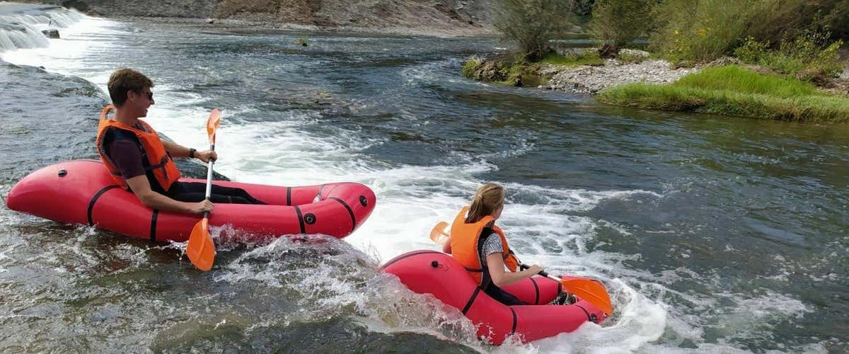 Si può salire in due persone sul packraft doppio, a patto che il secondo partecipante sia un bambino con altezza inferiore a 120 cm.