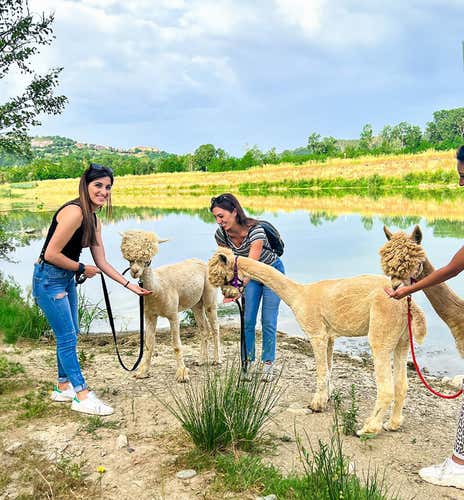 La nostra passeggiata con alpaca potrà dunque avere inizio: intraprenderemo una breve strada di campagna per poi avventurarci tra campi e vigneti. Ci addentreremo anche in un bosco, fino a raggiungere le sponde del fiume Ombrone che attraversa lo scenografico scenario della Maremma; in estate, potremmo anche assistere ai nostri amici animali rinfrescarsi facendo il bagno.