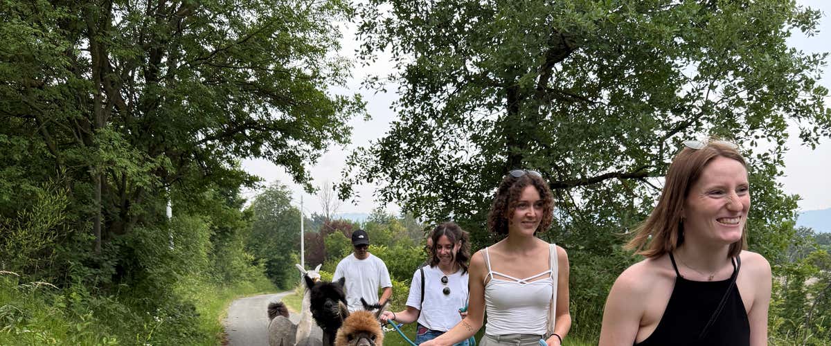 Ed eccoci pronti per la nostra passeggiata con alpaca e lama: cammineremo nella splendida cornice naturale dell'Alta Langa, addentrandoci in boschi e attraversando vigneti; lungo il percorso incontreremo numerose specie vegetali, dall'acacia al tiglio. La guida non mancherà di raccontare aneddoti e curiosità sul territorio e sugli animali.