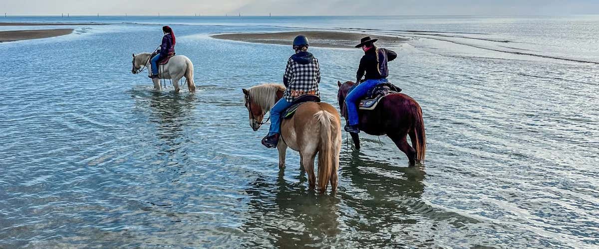 Ed eccoci pronti per la nostra passeggiata a cavallo: ci avventureremo nella campagna tra Caorle e Bibione, fino a raggiungere la Spiaggia di Caorle. Proveremo l'emozione unica di cavalcare su sabbia, in riva al mare! La guida condurrà il gruppo a cavallo, fornendo costante supporto.