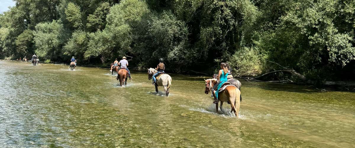 Con stomaco (e cuore) pieno, torneremo in sella per fare rientro al punto di ritrovo. La passeggiata a cavallo avrà durata 2 ore circa; la guida condurrà il gruppo a piedi o a cavallo secondo l'esigenza dei partecipanti e, se hai già esperienza in sella, potrai provare l'ebbrezza del trotto e del galoppo se concesso dalla guida.