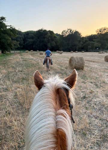 Faremo infine rientro al punto di ritrovo. La passeggiata a cavallo avrà durata 1 ora circa; l'esperienza totale avrà durata 1 ora e 15 minuti circa.