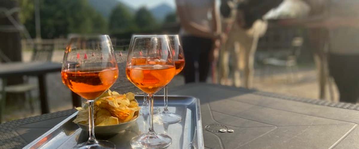 Farai infine rientro al punto di ritrovo, dove troverai ad attenderti un aperitivo composto da patatine, olive, crostini con salumi o altre stuzzicherie secondo stagionalità e disponibilità del giorno; 1 calice di vino e bevande analcoliche in accompagnamento.