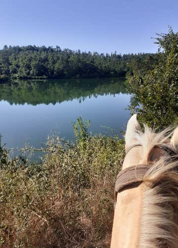 Ed eccoci pronti per la nostra passeggiata a cavallo: cavalcheremo nel caratteristico scenario collinare della provincia di Pisa, avventurandoci in aperta campagna e boschi. Lungo il percorso incontreremo uno scenografico laghetto, ammireremo il Monte Serra e la pianura del Valdarno Inferiore senza mancare di sostare in punti panoramici per scattare foto ricordo. La guida condurrà il gruppo a cavallo e la passeggiata si svolgerà al passo.