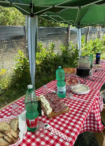 Faremo infine rientro al punto di ritrovo; l'esperienza avrà durata totale 1 ora circa. Se selezionata l'opzione "con aperitivo", troveremo inoltre ad attenderci una tavola imbandita con salumi, formaggi e altri prodotti del territorio a km 0; acqua e vino in accompagnamento.