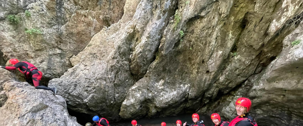 Poi sarà il momento di tuffarci in acqua! Cammineremo, nuoteremo e salteremo lungo un tratto di circa 2 km di torrente alpino, lasciandoci trasportare dalla corrente e affrontando salti di 3 metri (obbligatori). Toboga naturali, arrampicate e tratti a nuoto renderanno il percorso ancora più emozionante.