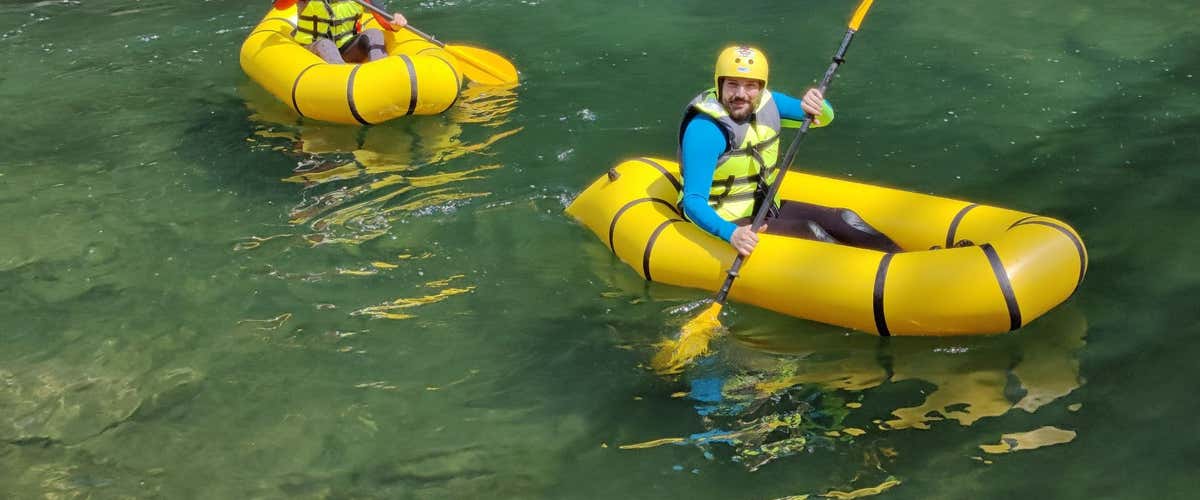 Dopodiché saliremo a bordo di un furgone e in circa 15 minuti di transfer raggiungeremo il punto di partenza del percorso. Prima che l’avventura abbia inizio, ti farò un briefing per spiegare le regole di sicurezza e come muoverti in acqua con il packraft usando la doppia pagaia.