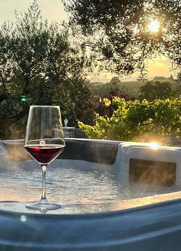 - Nel resto dell'anno (da ottobre a maggio): il pacchetto include accesso all'area benessere esterna e all'area fitness esterna. L'area benessere si compone di una passerella che attraversa lo storico uliveto costellato di due vasche idromassaggio con aromaterapia, una sauna lituana in botte e un'area relax con tisaneria, frutta secca e biscotteria di produzione propria. L'accesso è consentito per un massimo di 2 ore.