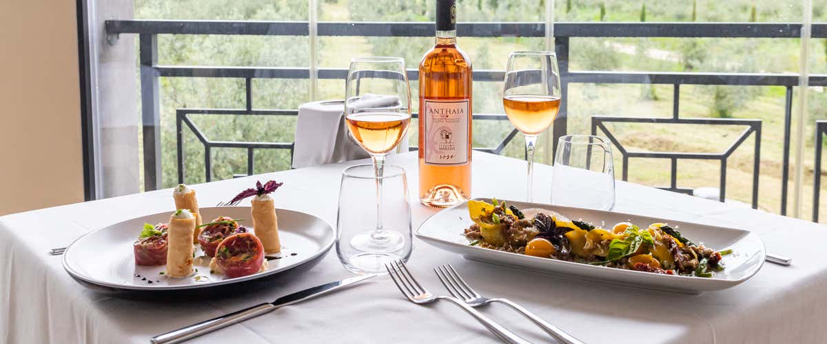E per soddisfare ogni senso, il soggiorno include anche una cena presso il ristorante della struttura. Il menù si compone di 3 portate quali antipasto, primo o secondo e dolce (bevande escluse); la maggior parte degli ingredienti sono km 0, coltivati nella serra della struttura o provenienti da fornitori del territorio. Il ristorante affaccia inoltre sullo scenografico uliveto della proprietà.
