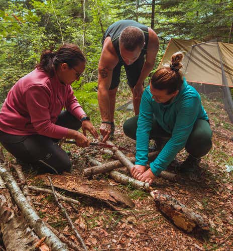 Da lì, in pochi minuti di cammino raggiungeremo la nostra base operativa: una radura isolata dove allestiremo insieme il campo. Ci metteremo poi alla prova con le prime tecniche di sopravvivenza: accensione del fuoco, costruzione di ripari, nodi da campo e utilizzo dell’attrezzatura.